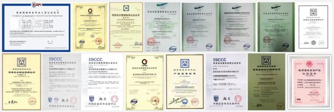 另外还有工信部的入网许可证、中国信息安全认证中心的信息安全产品认证、公安部销售许可证、国家保密局涉密证书、国家密码局密码检测证书和军网认证证书等等。这里边很多证书是市场准入门槛,一部分是控标所用,还有一部分确确实实能提升产品本身的安全功能和安全性。